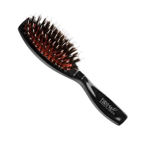 - Szczotka w kształcie owalnym z prostą wyprofilowana rączką do kształtu dłoni. Korpus wykonany z wysokiej jakości błyszczącego tworzywa, włos naturalny z dzika umieszczony na pomarańczowej poduszce pneumatycznej.