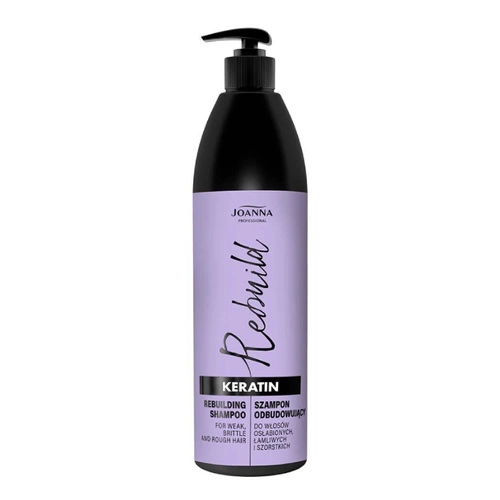 Szampon do włosów z keratyną Joanna Professional został specjalnie opracowany do stosowania w salonach fryzjerskich. Polecany jest do mycia i pielęgnacji włosów osłabionych zabiegami fryzjerskimi, łamliwych, szorstkich i trudno rozczesujących się. Szampon oczyszcza i odświeża delikatną skórę głowy, a zawarty kompleks keratynowy dba o odbudowę i wzmocnienie włosów. Sprawia, że odzyskują elastyczność, sprężystość i siłę.